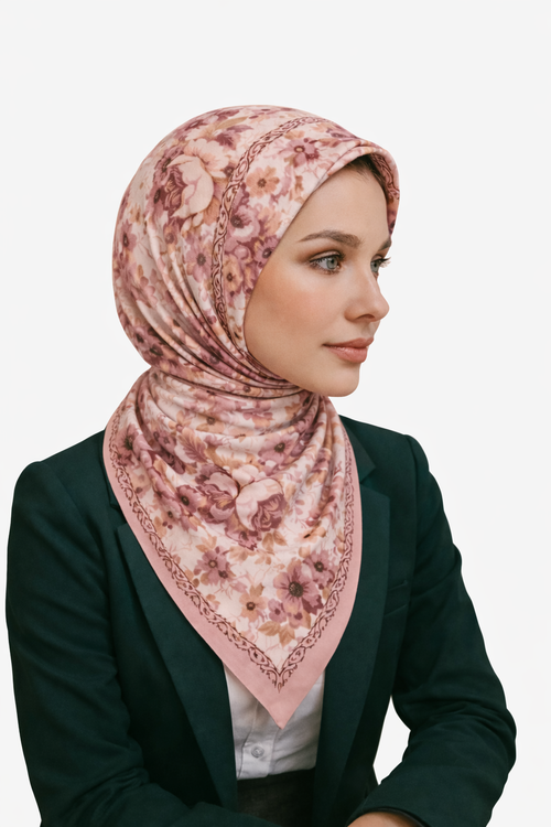 Pembe Çiçekli İpek Eşarp – Giovanni Boulera 4100665 65 cm x 65 cm -